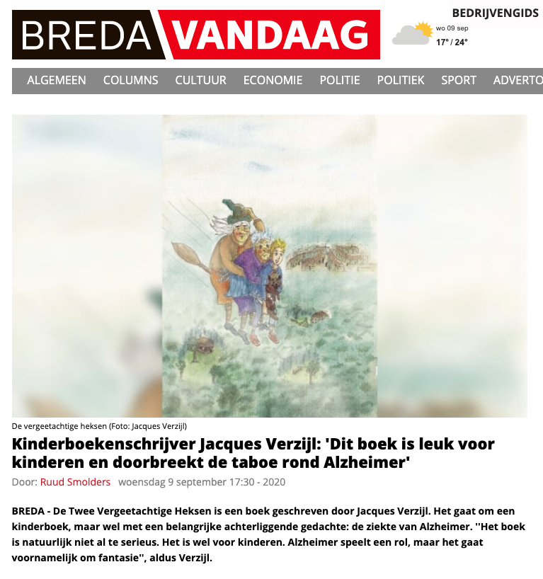 De nieuwssite Breda Vandaag heeft op woensdag 9 september een artikel geplaatst over het boek 'De twee vergeetachtige heksen'.