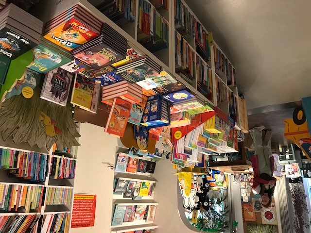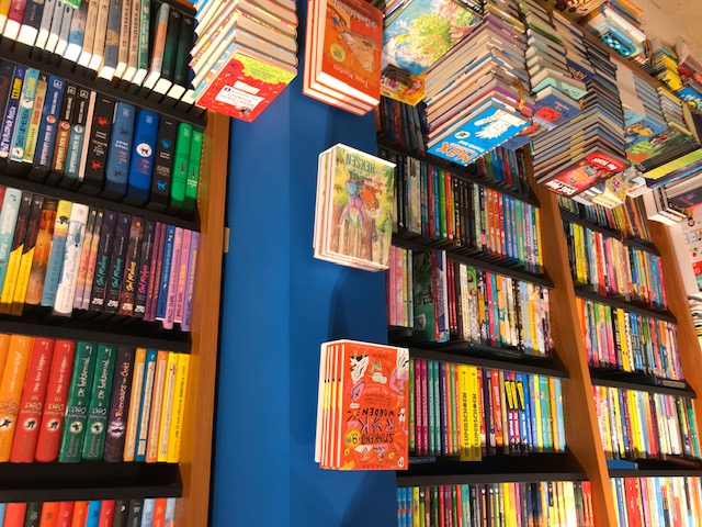 Voor de kinderboeken is een aparte etage ingerichte, waar je via de trap in de winkel zelf naar toe gaat. Daar ligt dus nu ook het boek van de 2 vergeetachtige heksen!