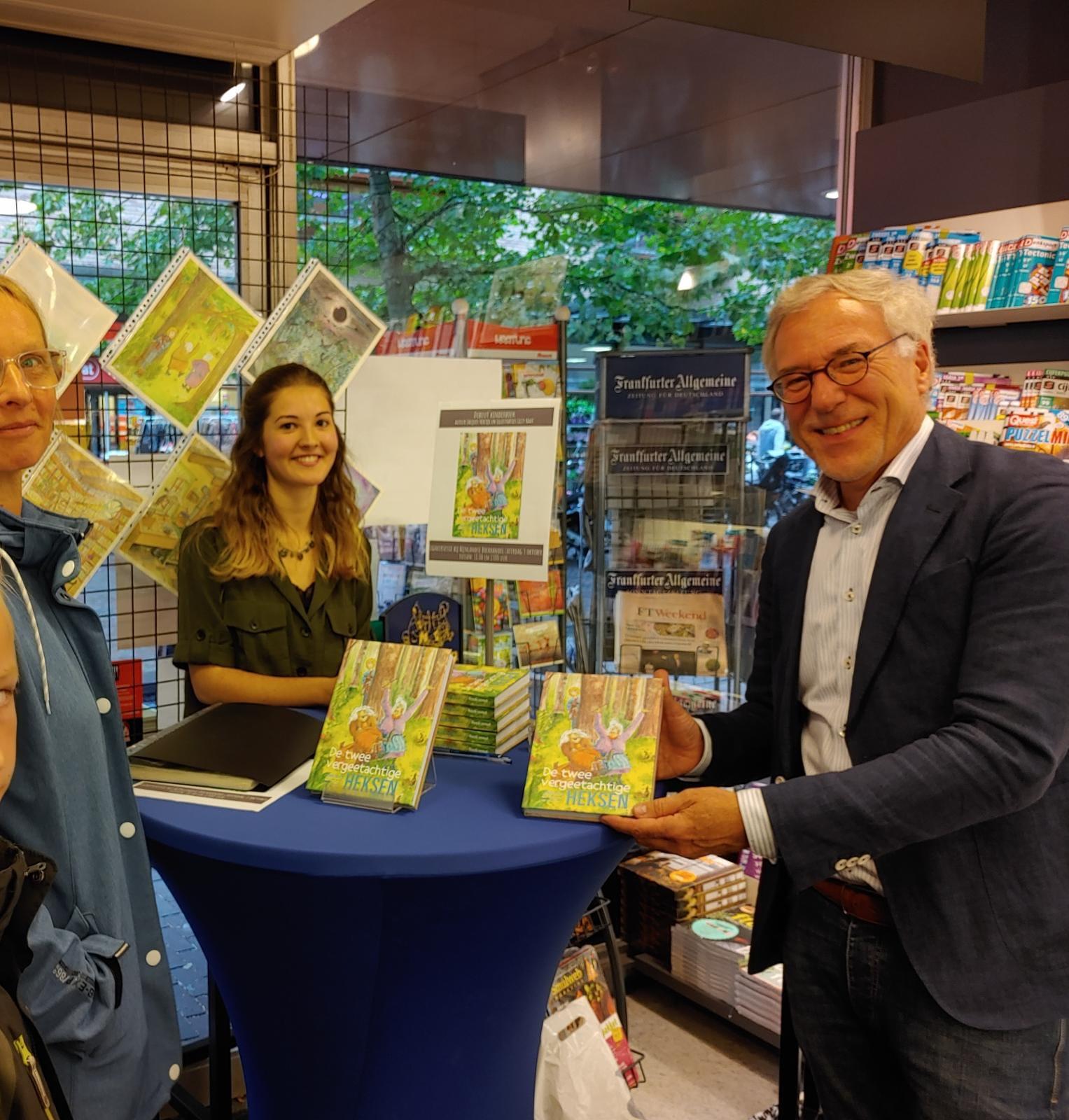 Ook de Rijnlandse Boekhandel in Oegstgeest heeft een aantal exemplaren van het boek “De Twee Vergeetachtige Heksen” op voorraad en het bijzondere is ook dat daar de illustrator van dit boek, Lizzy Kaat daar ook werkt. Dus met een beetje geluk treft u haar daar aan en kunt u als u dat wilt het boek door haar “letterlijk” laten signeren met een leuke unieke illustratie.