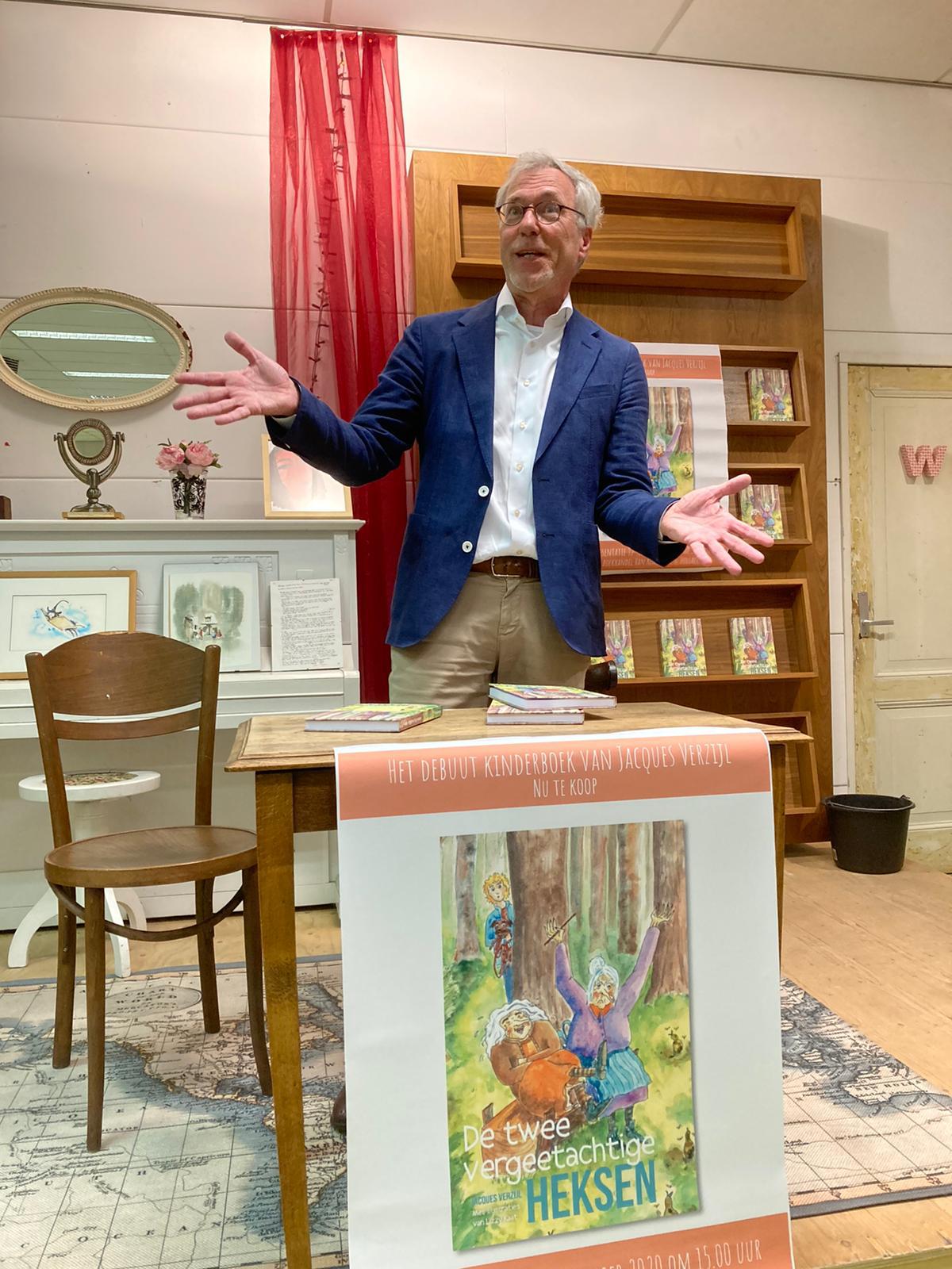 Onder veel belangstelling vond de feestelijke uitgave en signeersessie van het boek plaats op zaterdag 12 september 2020 bij de boekhandel van Kemenade & Hollaers. Na een woord van welkom door René Hollaers van boekhandel van Kemenade Hollaers, vertelde Jacques Verzijl in het kort hoe het ooit begonnen was met het fantaseren van verschillende verhalen en hoe hij dit vastgelegd had. Zijn eerste verhaal heeft hij in de afgelopen 2 jaar omgezet naar zijn eerste kinderboek “De Twee Vergeetachtige Heksen”. De eerste 2 exemplaren van het boek werden aan zijn kinderen Matthijs en Harlin overhandigd. Zij waren voor de schrijver dé inspiratiebron om verhalen te gaan fantaseren en op te gaan schrijven in boekvorm. Jacques Verzijl las vervolgens stukjes voor uit zijn eigen boek. Onder het genot van een hapje en drankje wilden heel veel mensen een gesigneerd boek bemachtigen, al dan niet met een persoonlijke noot erbij! Een mooie aftrap van zijn debuut kinderboek. Dit smaakt naar meer.